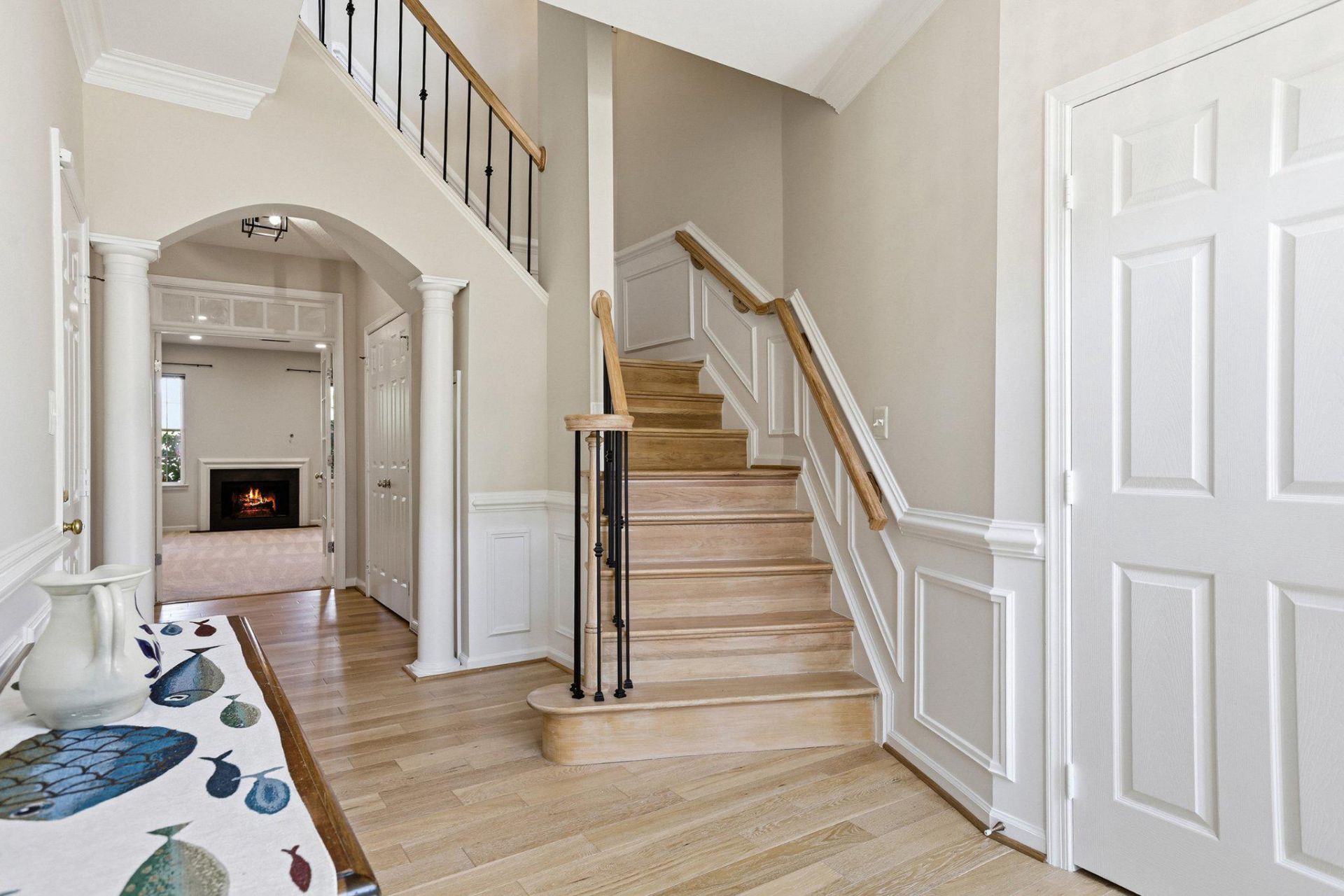 Exquisite Custom Robert B. Jordan Townhome with Panoramic Lake Views! Nestled between picturesque Alder Lake and Ashburn Lake, this stunning custom-built townhome offers breathtaking panoramic water views and an unbeatable location in the heart of Ashburn Village. Just steps from the Lakes Pool, tennis courts, and miles of scenic walking trails encircling Alder, Cedar, and Beech Lakes, this Ashburn Village home provides effortless access to everything you love. This stunning 3 level home with incredible water views has been loaded with many recent updates and improvements and offers 2,390 sq ft of meticulously finished living space, 3/4 Bedrooms, 3.5 Baths, 1 Car Garage, 2-level Sunroom Extension with gas fireplace, and a fully fenced backyard with beautiful professional landscaping and private walk-out patio. The ground floor offers a grand Foyer featuring engineered wood floors, 9-foot ceilings, crystal chandelier, and custom trim and millwork throughout. A striking winding hardwood staircase with elegant metal balusters leads upstairs. The remodeled ground floor level boasts a bright and spacious Family Room (possible 4th Bedroom) with updated carpeting, wall of windows, cozy gas fireplace with slate surround, and French doors with a glass transom. Newer sliding glass doors open to a private patio and a beautifully landscaped, fully fenced backyard. A convenient remodeled full bath with ceramic tile flooring and shower surround with elegant accents completes this level, along with a washer and dryer. The entire second floor shines with newer wide-plank White Oak hardwood floors and soaring 9-foot ceilings. The Bright Living Room and Dining Room feature floor- to-ceiling windows across the entire front of the home while the Gourmet kitchen features ceramic tile flooring, updated granite countertops, 42-inch cabinets, black GE appliances (including a French-door refrigerator), and stylish pendant lighting. The bright Sunroom/ Family Room area offers a dramatic cathedral ceiling, floor-to-ceiling windows, and direct access to a wrap-around deck with spectacular panoramic lake views. This is the perfect spot to enjoy morning coffee or watch the famous Ashburn Village Fireworks display over the lake each summer. The third level features hardwood flooring in the hallway and newer carpeting in the bedrooms. The luxurious Primary Suite includes a large walk-in closet, a second closet, and private Luxury Bath with wainscoting, double vanity, ceramic tile flooring, a separate soaking tub, and a glass-enclosed shower. Two additional spacious secondary bedrooms share an updated Hall Bath with ceramic tile, newer fixtures, vanity, mirror, and lighting. One secondary bedroom boasts a large bay window. Recent Upgrades & Improvements include new interior and exterior paint, updated lighting fixtures, newer Vytex Georgetown thermal vinyl windows, Sunrise Restorations thermal glass doors, new Carrier HVAC system (2024), new roof (2014), newer Provia front door with sidelights and transom, new insulated garage door (2023), new deck boards and Trex railing (2020), new rear fence (2023), professional landscaping front and rear, and abundant storage, including convenient space under the stairs. Live the ultimate Loudoun County lifestyle in one of Ashburn’s most desirable communities. Ashburn Village boasts an array of resort-style amenities including multiple stocked lakes, extensive walking trails, four outdoor pools, two clubhouses, tennis courts, and the state-of-the-art Sports Pavilion featuring an indoor pool, racquetball courts, basketball courts, and a fully equipped fitness center. The community also offers playgrounds, soccer fields, baseball/softball fields, and is home to two elementary schools and a middle school — all just minutes from your door. This rare combination of custom craftsmanship, stunning lake views, recent updates, and unparalleled community amenities makes this home truly one-of-a-kind.