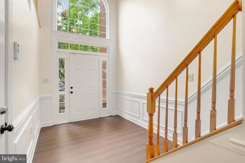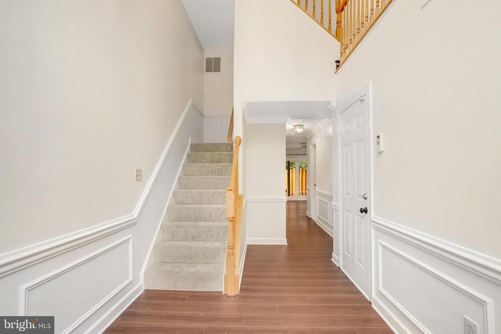 Gorgeous 3BR/2 full & 2 half BA brick-front townhouse featuring elaborate crown molding, chair rail, and box moldings. Beautiful newer LVP flooring on the first floor, updated kitchen with granite countertops and stainless steel appliances. Light-filled living room with bay window and decorative columns leading to formal dining room. Spacious primary suite with vaulted ceiling, walk-in closet, and French doors opening to a luxurious bath with a stall shower, soaking tub, double vanities, and skylight. Lower-level rec room with gas fireplace. Enjoy a fenced backyard with patio and upper deck. Conveniently located near Metro and I-495.